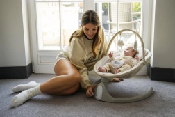 A beépített Bluetooth modul és a 10 dallam állítható hangerővel kellemes atmoszférát teremt. Az öt fokozatú ringatási tartomány hűen utánozza az anyaméhben tapasztalt mozgást, az időzítő pedig 8, 15 vagy 30 percre állítható, így könnyen kialakítható az ideális altatási rutin. A csúszásgátló tappancsok és az öt pontos övek maximális biztonságot nyújtanak.