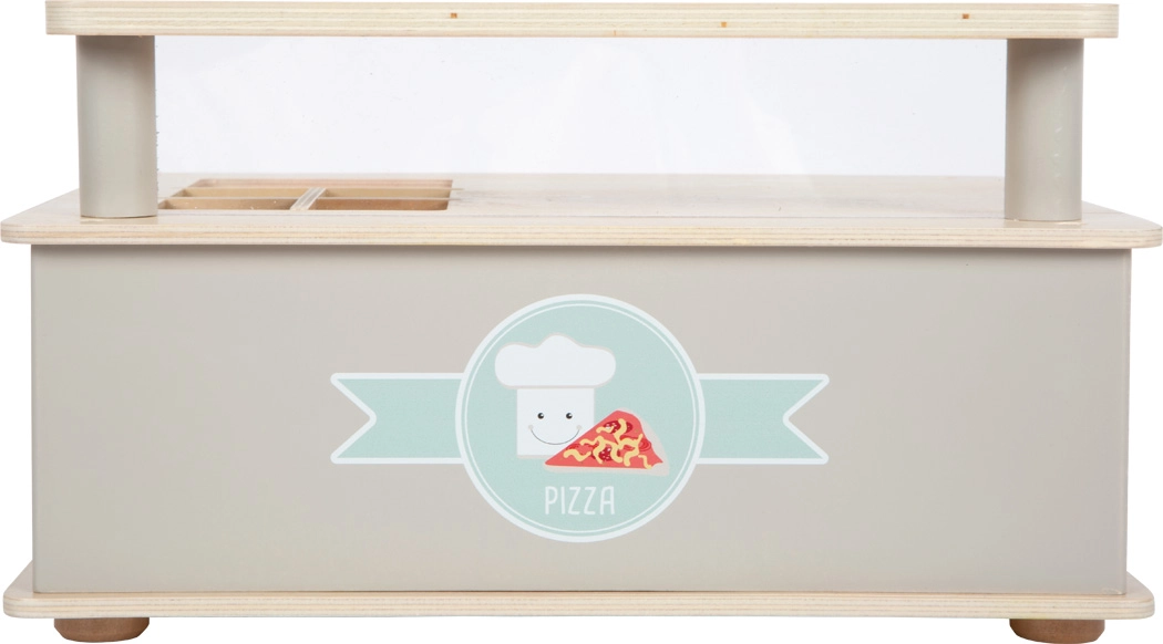 A small foot minőségi fa pizzériája remek kiegészítő minden gyerekkonyhához. A forgó, kattanó hangot adó gombbal ellátott sütő egyben kamra és eladópult is. A gyerekek a fa lapáton süthetnek, szeletelhetnek és tálalhatnak, a gazdag tartozékoknak köszönhetően pedig szakácsot és eladót is játszhatnak.
