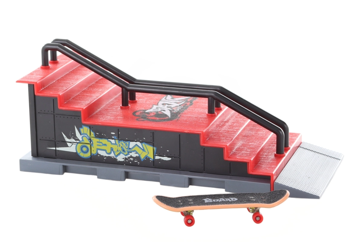 Ez a kompakt rámpa lépcsőkkel remek kiegészítő minden kis gördeszka-rajongónak. Tartozéka egy csavarozható mini gördeszka, amelyet a gyerekek könnyedén összerakhatnak, és kipróbálhatnak vele különféle trükköket és ugrásokat. A strapabíró műanyag kialakítás könnyű, mégis stabil a biztonságos otthoni és kültéri játékhoz.