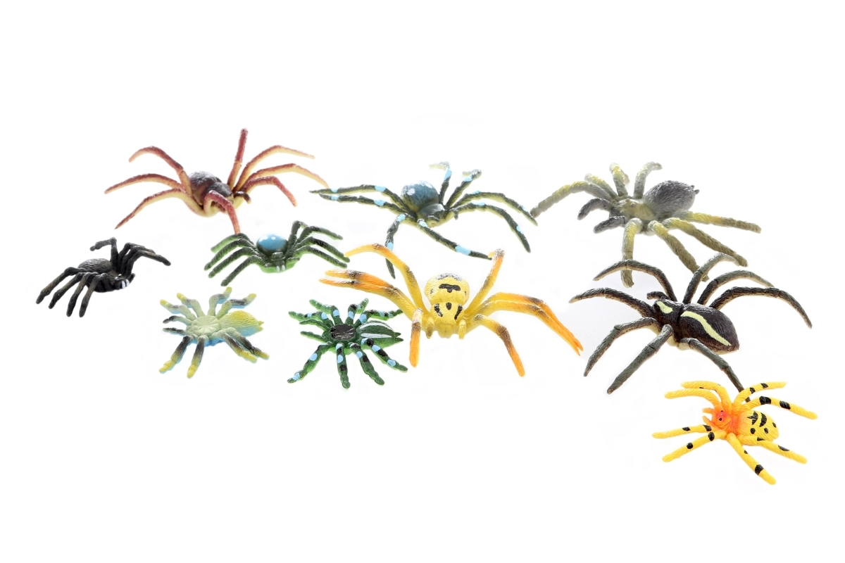 Szórakoztató műanyag pók készlet 3 éves kortól. A csomagban 10 élethű pók található, kb. 6 cm-es méretben, ideális játékra, gyűjtésre vagy kellékként bulikra és Halloweenre. Tartós műanyag és biztonságos kialakítás, amely támogatja a fantáziát és a kreatív játékot.