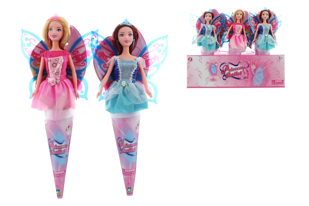 Az elegáns kiegészítők, mint a korona és a fülbevalók mesés csillogást kölcsönöznek a babának. A baba tartós műanyagból készült, míg a kúp papírból van, így tökéletes ajándékcsomagolásként is szolgál.