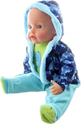 Ez a nagy, fiú baba remek társ a mindennapi játékhoz. A puha testecskének köszönhetően kényelmes fogni és ölelni, míg a műanyag fej és végtagvégek élethű megjelenést biztosítanak. A stílusos, dinoszaurusz motívumos ruhaszett egyszerűen levehető és visszaadható – ideális a finommotorika gyakorlásához és a fantáziadús játékhoz.