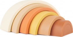 A Bieco Chocolate Bliss összerakható szilikon szivárvány 6 íves elemet kínál, amelyeket a gyerekek rakosgathatnak, egymásba illeszthetnek, sorba rendezhetnek és saját formákat építhetnek belőlük. A puha, kellemes tapintású anyag kíméletes a gyerek kezeihez és nem csúszik, így a legkisebbek is könnyen kezelik.
