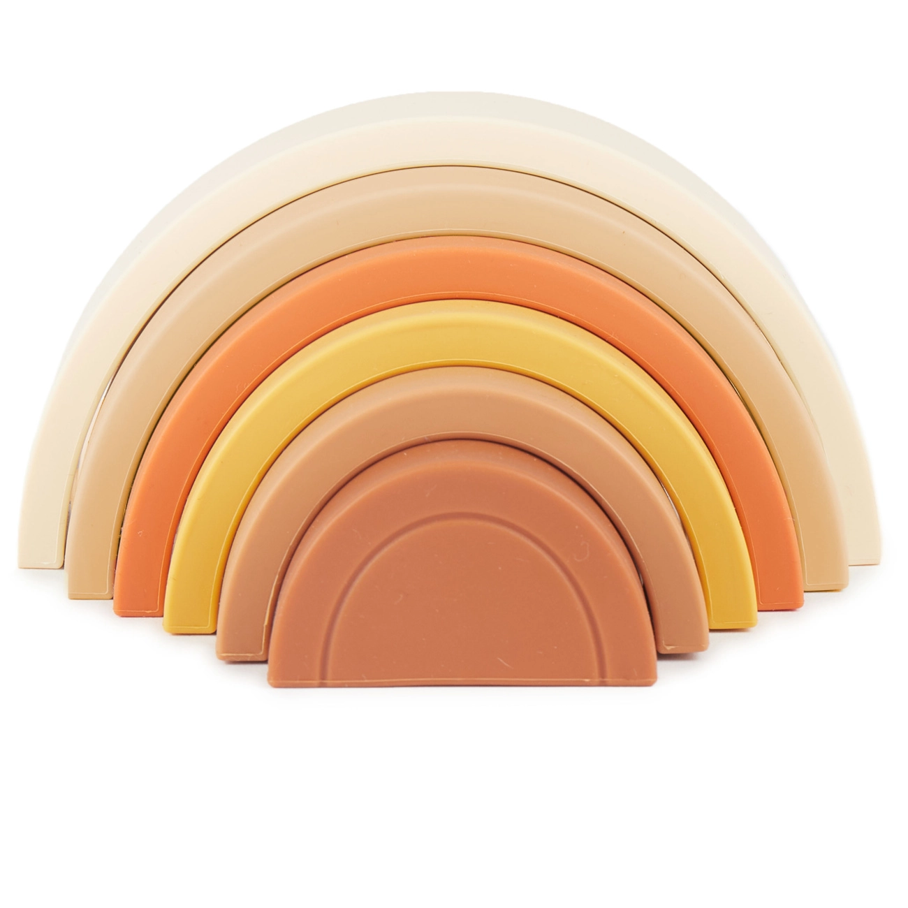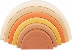 A Bieco stílusos, földszínű szilikon szivárványa ideális játék a totyogóknak. Támogatja a finommotorikát, a kéz–szem koordinációt és a színek és méretek felismerését. A puha, 100% szilikon biztonságos, tartós és könnyen tisztítható, ezért alkalmas fürdőbe, medencébe és strandra is.