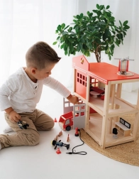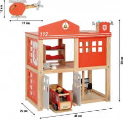 Változtasd a gyerekszobát akciódús mentőközponttá! Ez a masszív fa tűzoltóállomás két szintes, helikopter-leszállóval és tűzoltórúddal. A készlethez tartoznak hajlítható figurák, egy tűzoltóautó és sok kiegészítő. Az igazi hangulatot a fény- és hangmodul szirénával, a működő helikoptercsörlő és a nyitott kialakítás a könnyű hozzáférésért teremti meg. A játék fejleszti a finommotorikát, a képzelőerőt és a szociális készségeket.