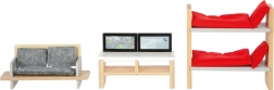 - Minőségi anyagok: tartós fa, textíliák és szövetek a kényelmes, hosszan tartó játékért.