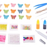 • Komplett készlet – 12 különböző formájú mini üvegcse, csillámok, pigmentek, díszek, eszközök.