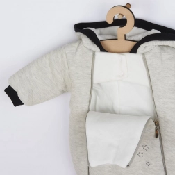 A praktikus két oldalsó cipzáras záródás jelentősen megkönnyíti az öltöztetést és a pelenkázást a baba felesleges mozgatása nélkül. A pamut bélés gyengéd a bőrhöz, a antiallergén poliészter töltet (120 g/m²) pedig megbízható szigetelést nyújt a hideg ellen.