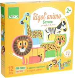 Fedezd fel a kreatív szórakozást a VILAC Vidám szafari kollekció fa kirakóival. Négy színes állat mágneses, levehető részekkel, amelyeket tetszés szerint keverhetsz és összeállíthatsz vidám kombinációkba. A játék fejleszti a finommotorikát, a kreativitást és a színek és formák felismerését, ráadásul bájos illusztrációval Ingela P. Arrhenius tollából.