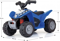 Az egyszerű kezelésnek köszönhetően – a gázpedál lenyomására – a quad egyenletesen elindul, felkapcsol az első lámpa, és a duda is gondoskodik a mókáról. A vezetés fejleszti a motorikus képességeket, a térbeli tájékozódást és a kézügyességet. Az akkumulátor és a töltő a csomag része.