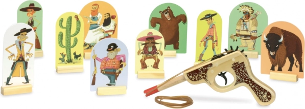Állítsa fel a céltáblákat, feszítse meg a gumit, és hívja párbajra a családot vagy a barátokat a nappaliban. A minőségi fa kivitel tartósságot és hosszú élettartamot biztosít, míg a vonzó western dizájn elbűvöli a kis pisztolyhősöket.