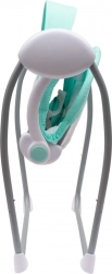 A stabil fém váz és az 5 pontos biztonsági öv garantálják a biztonságot, míg a puha, színes poliészter kárpit és az állítható háttámla maximális kényelmet biztosítanak. A két játékkal ellátott ív 5 pozícióban állítható, támogatva az érzékszervek és a motorika fejlődését. A hintaszék könnyen összecsukható, így kevés helyet foglal.
