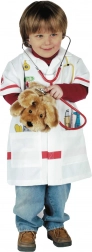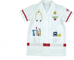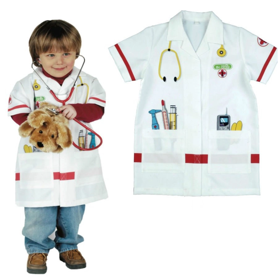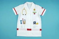 A sztetoszkóp, hőmérő, fecskendő és egyéb motívumok támogatják a valósághű orvosos játékot és fejlesztik a gyerekek fantáziáját.