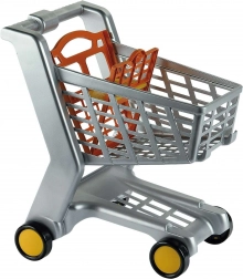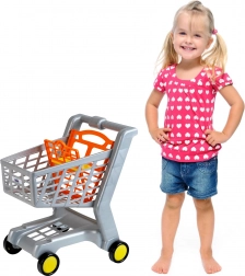 A nyitott kosár, a fogantyú és a négy kerék a szupermarketek valódi kocsiját idézi – a gyerekek autentikus vásárlási élményt kapnak.