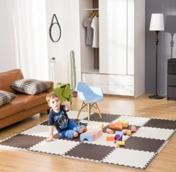 visszafogott barna színben, ideális parkettára, járólapra és laminátra. Az 1 cm-es vastagságnak köszönhetően kiválóan szigetel és elnyeli az ütéseket. A két nagy elem és a 4 perem könnyen egy kompakt felületté illeszthető, illetve azonos modellű készletekkel nagyobb játszóterületté bővíthető.