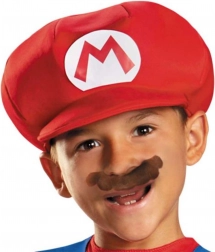 - Teljes szett: piros-kék overál sárga gombokkal, sapka, bajusz