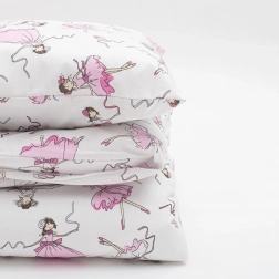 Aranyos New Baby Ballerina Bella pamut babaágynemű szett táncoló balerina mintával. Párnát és takarót tartalmaz antiallergén töltettel. Kiváló minőségű, 100% pamutból készül a puha kényelemért és a bébi érzékeny bőréhez való kíméletességért.