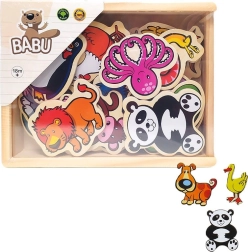 Fa mágnesek állatokkal ideális oktató játék gyerekeknek. Ez a készlet 20 színes, változatos mágnest tartalmaz, amelyek segítenek fejleszteni a finommotorikát és az állatok megismerését.