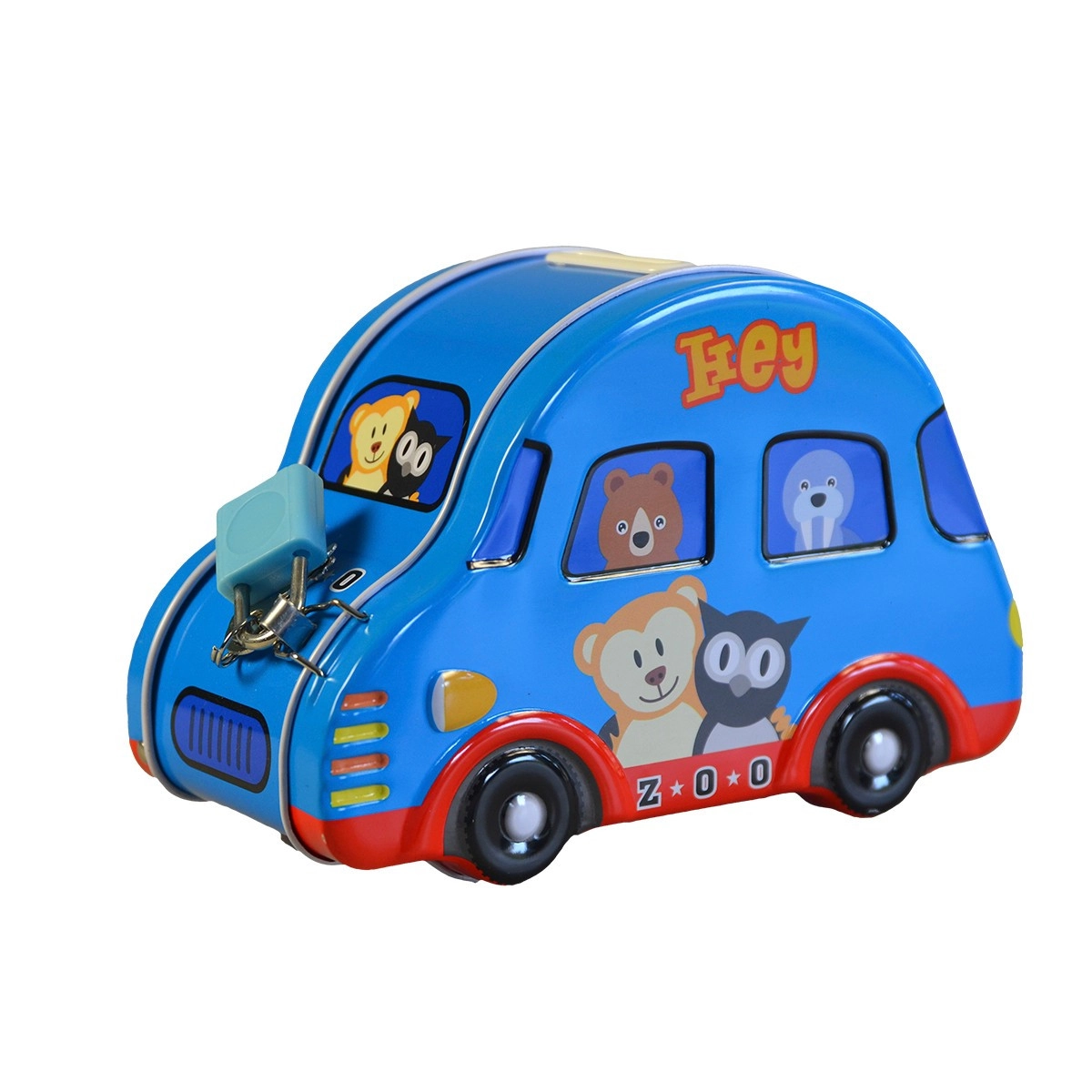 Ez a gyerekeknek szánt, autó alakú persely a játékos dizájnt praktikus védelemmel ötvözi. A fém kivitel tartós, a színes, állatos nyomatok pedig első pillantásra magukra vonják a figyelmet. Felül található a nyílás az érmék bedobásához, hátul vagy elöl pedig egy kis lakat kulcsokkal a megtakarítások biztonságáért.