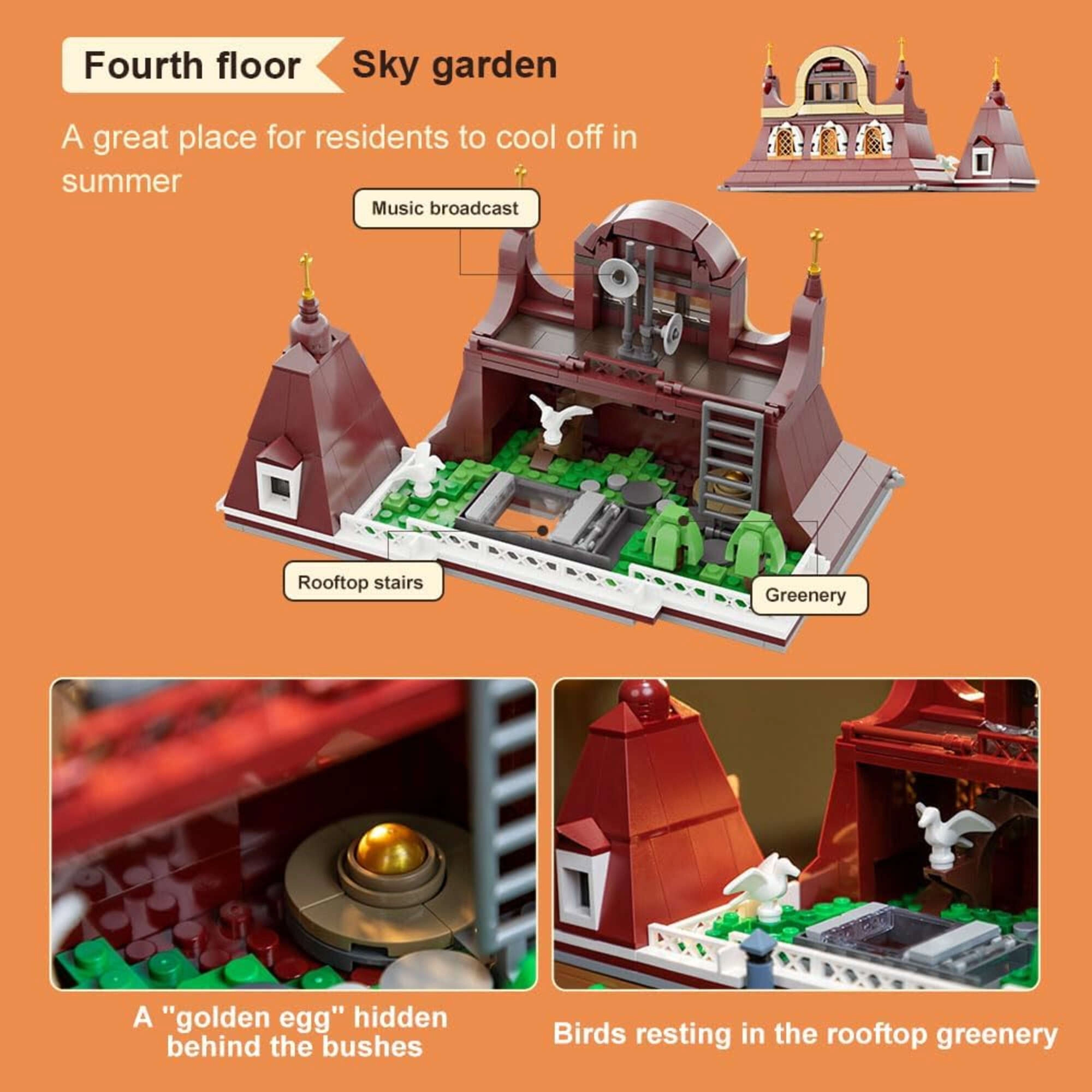 Élvezze az európai építészet által ihletett lenyűgöző modellt. A meleg barna tónusok és az átgondolt részletek autentikus hangulatot teremtenek egy nyüzsgő piactérből – szinte érezni a frissen sütött kenyér és a kávé illatát. A moduláris felépítés lehetővé teszi az emeletek könnyű szétválasztását és átrendezését a maximális kreativitás és kiállíthatóság érdekében.