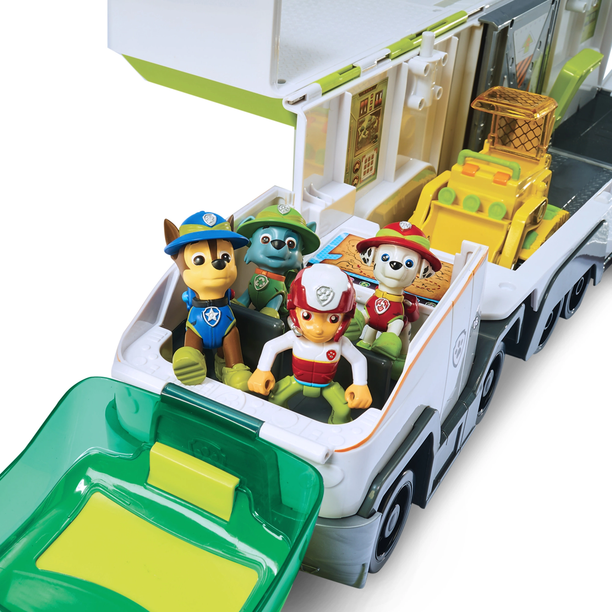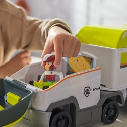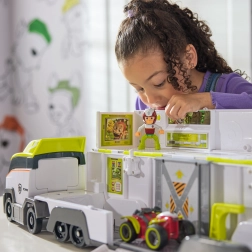 A szállító kinyitható, tágas játékszetté alakul panelekkel, rámpákkal és hellyel a figurák és járművek számára. Ideális a PAW Patrol csapat gyors bevetéséhez.