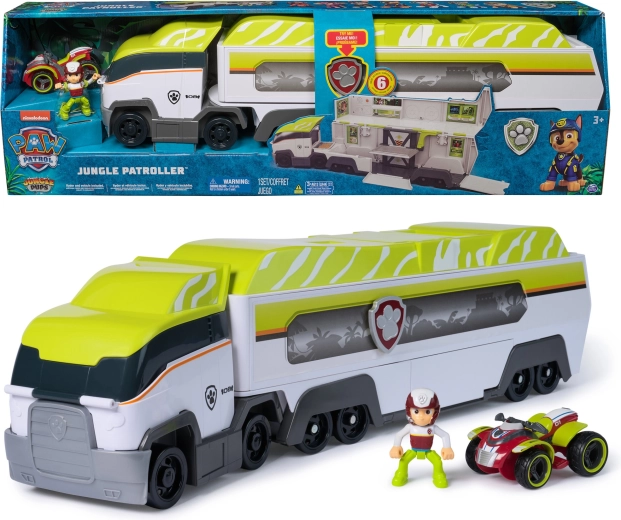 A Jungle Patroller egy impozáns, körülbelül 69 cm hosszú szállító, amely kinyitva tágas játékalappá válik. A belső modul emelőplatformmal feljuttatja Rydert az ATV-vel a magasabb szintre, megteremtve a színteret az izgalmas mentőakciókhoz. A hanghatásoknak köszönhetően – a jelvény vagy a kommunikációs gomb megnyomására – minden küldetés még dinamikusabbnak hat.