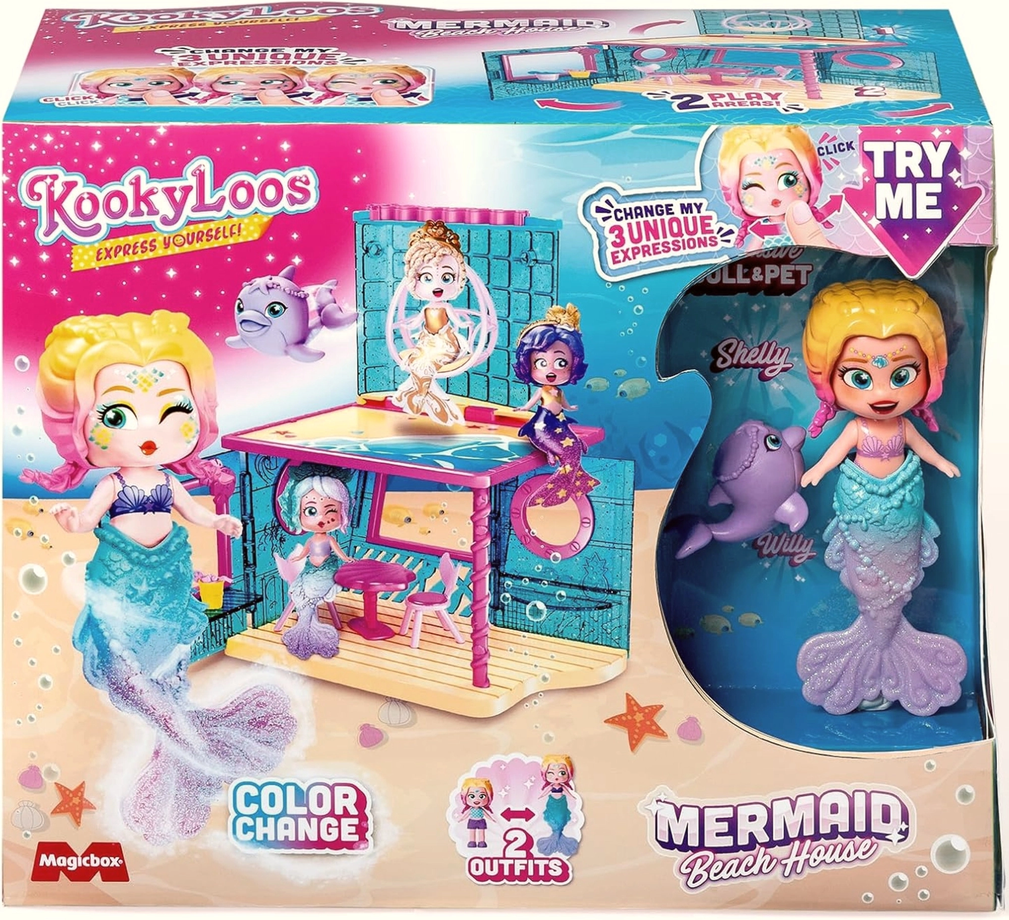 Fedezd fel a KookyLoos varázslatos világát Shelly figurával és a sellőknek készült tengerparti házikójával! Ez a játékos szett vízben színváltó elemeket, 3 arckifejezést egyetlen kattintással, valamint rengeteg divatos kiegészítőt kínál a kreatív mix & match öltöztetéshez. Tökéletes ajándék azoknak a gyerekeknek, akik imádják a fantáziát, a gyűjtögetést és a stílust.