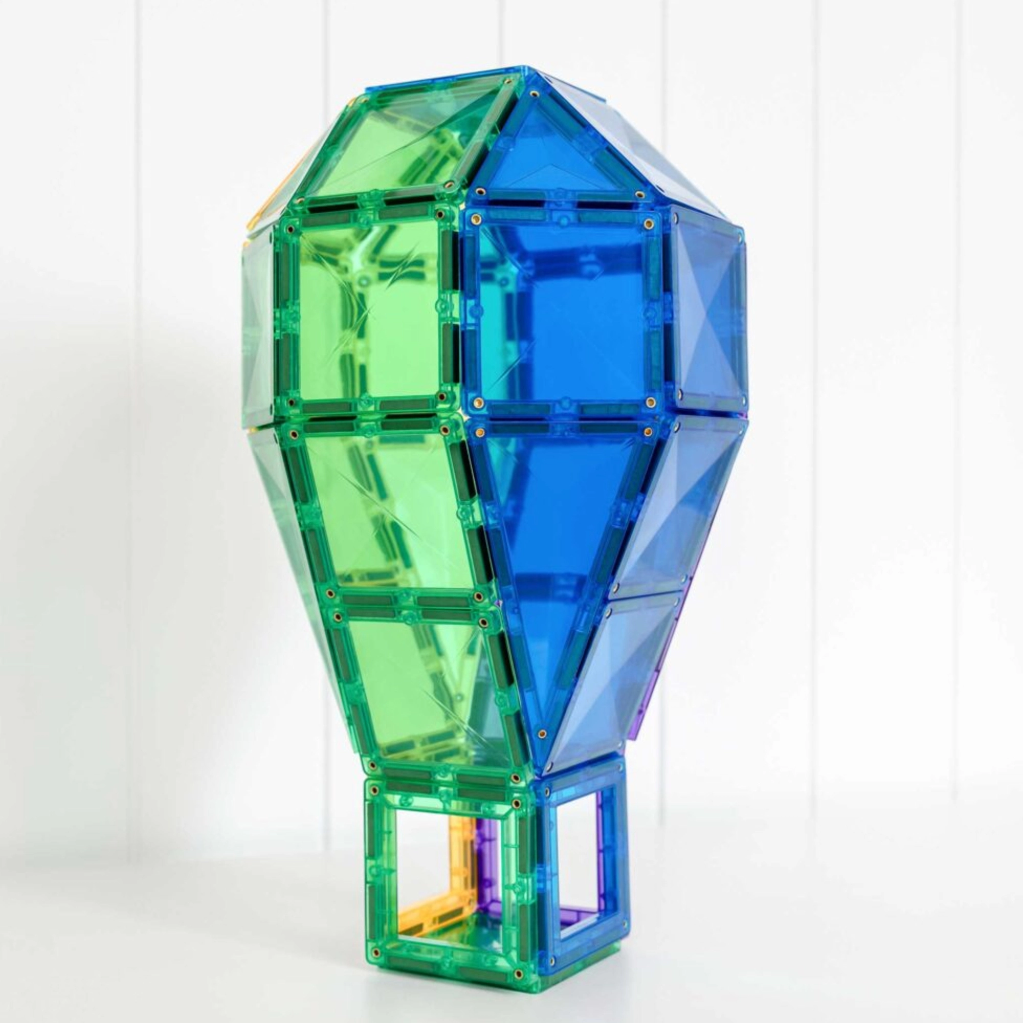 A különböző formák és az átlátszó színek lehetővé teszik kastélyok, tornyok, hidak és rakéták építését. A gyerekek játék közben természetesen fedezik fel a geometriát és a térbeli összefüggéseket.