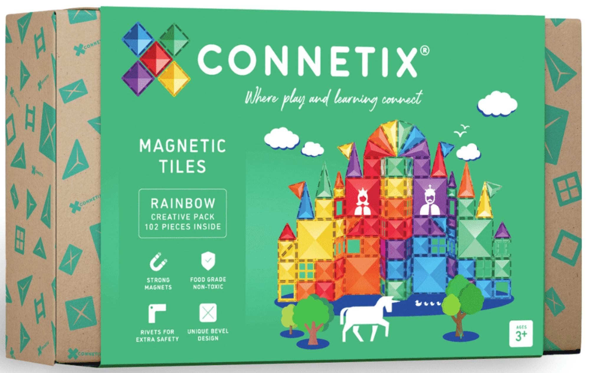 A CONNETIX Rainbow Creative Pack játékos módon vezeti be a gyerekeket a geometriába, az egyensúlyba és a mágnesesség alapelveibe. A különböző formájú, színes, átlátszó elemek a erős mágneseknek köszönhetően minden oldalról „összekattannak”, így 2D és 3D modellek építhetők. Ideális otthoni játékhoz, óvodákba, Montessori- és szenzoros terápiához.