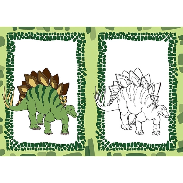 Fedezd fel az őskori lények világát a praktikus A5-ös formátumú kifestővel. A füzet 9 fekete-fehér képet a színezéshez és 9 színes mintát kínál az egyszerű inspirációhoz és a gyerekek kreativitásának fejlesztéséhez.