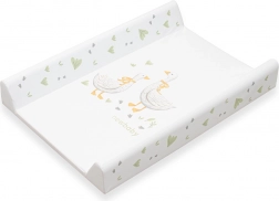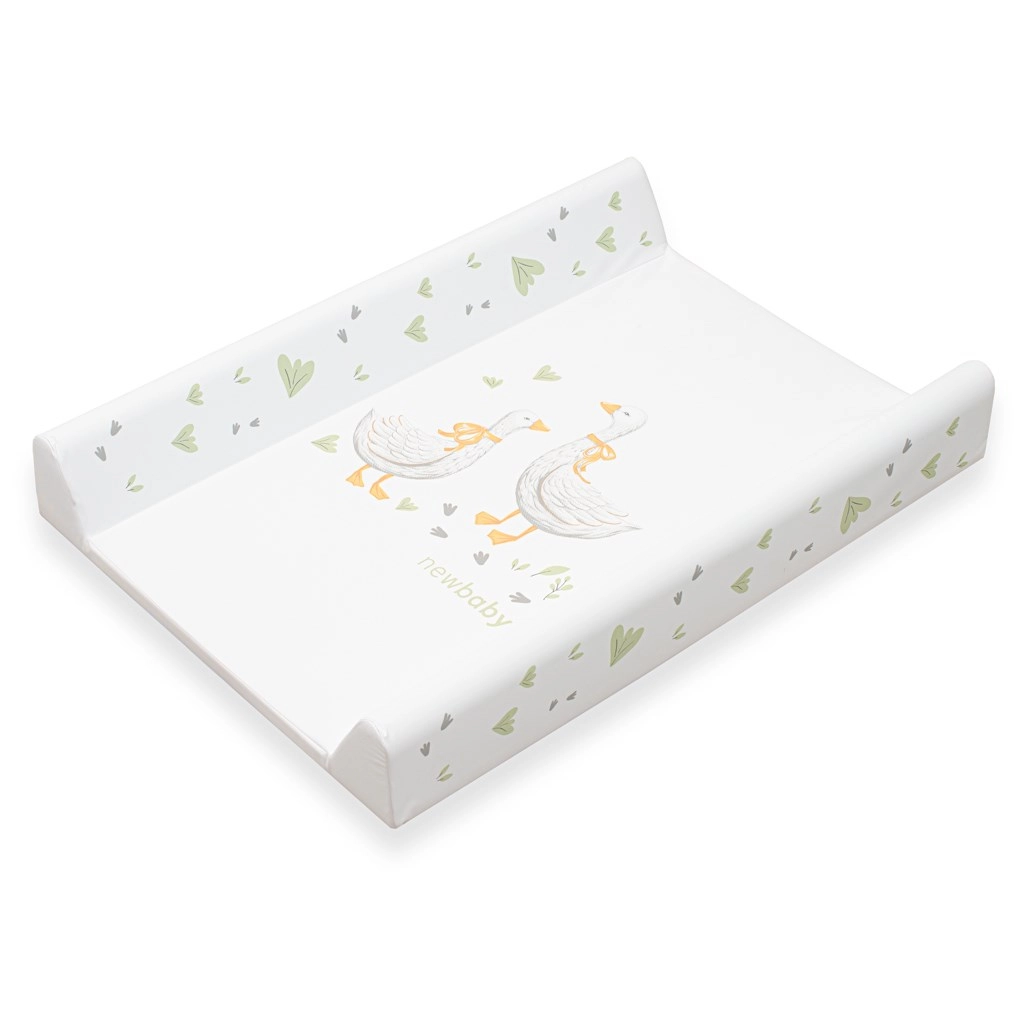 A New Baby libás pelenkázó feltétet a baba kényelmes és biztonságos gondozására tervezték. A vízálló és könnyen tisztítható felületnek köszönhetően a pelenkázó felület mindig tiszta marad, míg a megemelt oldalak stabilitást és nyugalmat biztosítanak pelenkázás közben. A bájos libaminta felkelti a gyermek figyelmét és barátságossá tesz minden babasarkot.