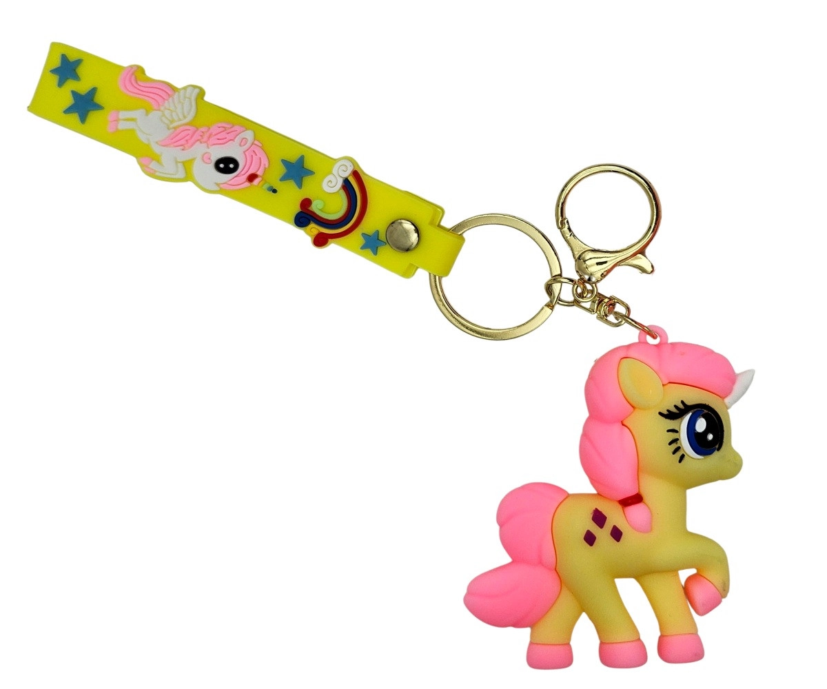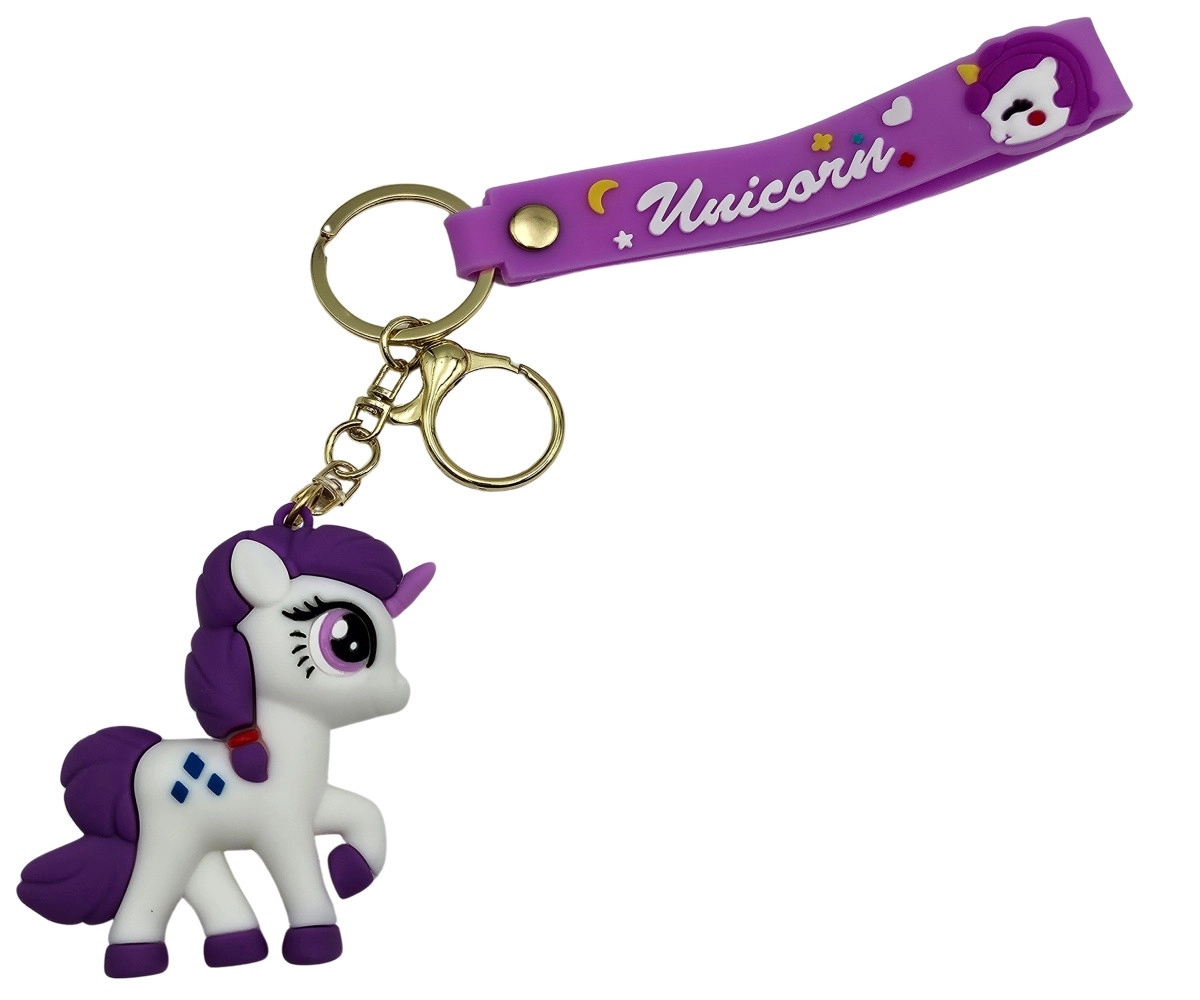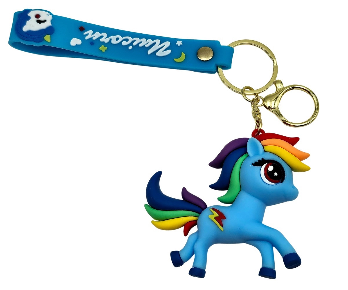 Aranyos, 6,5 cm-es unikornis kulcstartó tartós, rugalmas szilikonból, amely varázslatos megjelenést kölcsönöz a kulcsoknak és a hátizsáknak. Több színváltozatban, kényelmes pánttal kapható. 3 éves kortól ajánlott. Stílusos kiegészítő, puha szilikon, praktikus pánt és biztonságos fém karikák a könnyű rögzítéshez.