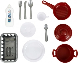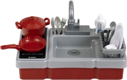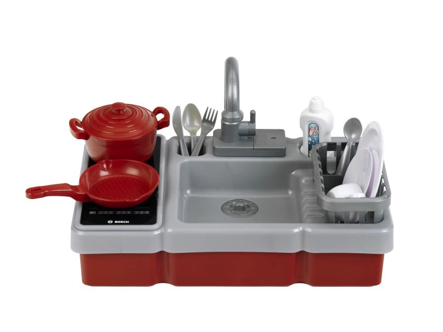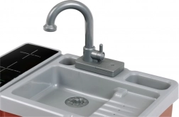 Ez a kidolgozott szett lehetővé teszi, hogy a gyerekek biztonságosan utánozzák a mindennapi konyhai tevékenységeket. A körforgásos vízáramlással működő csapnak és a fény- és hanghatású érintéses indukciós főzőlapnak köszönhetően a játék maximálisan élethű és szórakoztató. Nem hiányzik a csepegtető, a „mosogatószer” helye, valamint a bőséges tartozékkészlet a tálaláshoz és főzéshez.