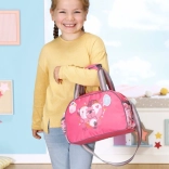 A vállpántnak és a masszív füleknek köszönhetően a táska többféleképpen kényelmesen hordható. A vállpántokon lévő bájos címkék ráadásként vidám részletet nyújtanak pelenkázás közben. A szett 36 cm-es és 43 cm-es babákkal kompatibilis, és támogatja a fantáziadús, változatos és hosszan tartó játékot.