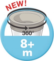 A NUK Mini Magic Cup Night okos bögre kb. 8 hónapos kortól, amely támogatja az önálló ivást. Az innovatív 360°-os perem lehetővé teszi az ivást a teljes kerületen, mint egy hagyományos bögréből, míg a tető belsejében lévő szilikon tömítés megakadályozza az ital véletlenszerű kifolyását. Éjszaka hasznosak a világító effektek, amelyeknek köszönhetően a bögrét sötétben is könnyen megtalálja.