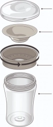 A bögre mindössze három részből áll, ezért nagyon könnyű szétszedni és tisztítani, valamint mosogatógépben mosható. A PP és szilikon anyagok BPA-mentesek és megfelelnek az EN 14350 szabványnak. A NUK Easy Learning termékcsaláddal való kompatibilitás megkönnyíti az alkatrészek cseréjét igény szerint.