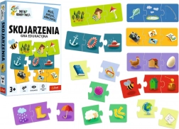 A TREFL MALY ODKRYWCA sorozatának Társítások oktató játéka a legkisebbeket vezeti be a logikai összefüggések világába. Egyszerű párok és illusztrációk segítségével a gyerekek megtanulják felismerni, mi tartozik össze, bővítik szókincsüket és leírókészségüket.