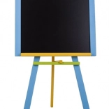 Praktikus, kemény bükkfából készült állványos tábla 100 × 56 cm-es felülettel, ideális otthoni tanuláshoz és kreatív játékhoz. Hagyományos krétával írható, amely nedves ruhával vagy szivaccsal könnyen letörölhető. A stabil szerkezet síma felületre helyezést igényel, és kizárólag beltéri használatra készült. 3 éves kortól ajánlott.