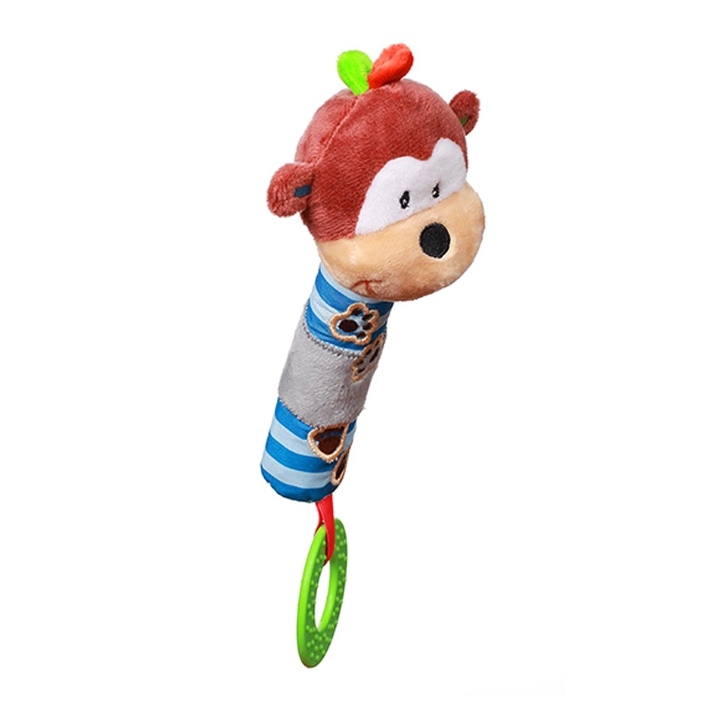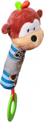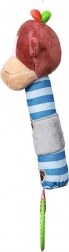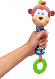 Ez a BABY ONO plüss sípoló játék rágókával, vidám majmocska formában a kis kezekhez lett tervezve. Rázásra vagy megnyomásra lágy sípoló hangot ad, amely felfedezésre ösztönzi a gyerekeket. A texturált rágóka enyhülést nyújt az érzékeny ínynek a fogzás időszakában.