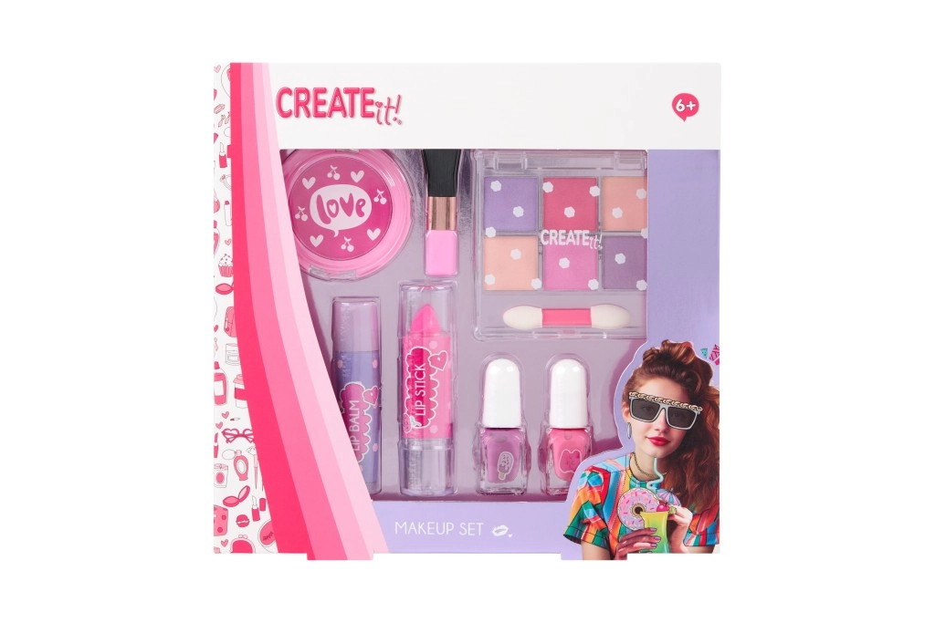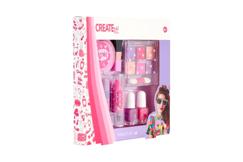 A CREATE IT! Pink Turquoise sminkkészlet ideális választás gyerekek kreatív alkotásaihoz és szerepjátékos szépség-rutinhoz. A pasztellszínek, a csillogó árnyalatok és a könnyen lemosható termékek minden kis divat- és sminkrajongónak örömet szereznek. Remek ajándék, szülinapi bulikra vagy kreatív délutánokra barátokkal.