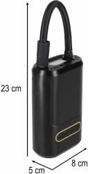 Kompakt, vezeték nélküli 3 az 1-ben pumpa, amely ötvözi a mini kompresszort, a powerbankot és az SOS funkciós LED lámpát. A digitális kijelzőnek, a cserélhető fejeknek és a max. 150 PSI (10 bar) nyomásnak köszönhetően könnyedén felfújhatja az autó- vagy kerékpárabroncsokat, labdákat és felfújható eszközöket – bárhol, bármikor.