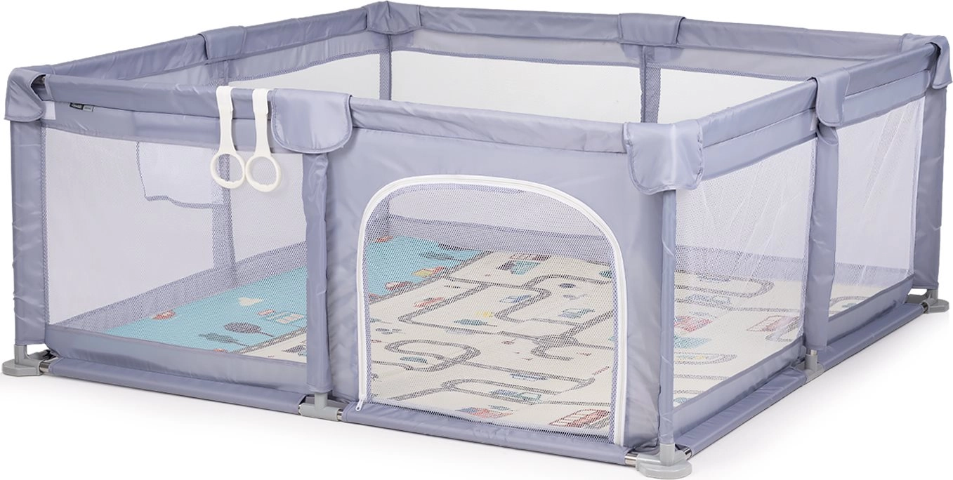 Praktikus és biztonságos gyermek járóka mindennapi játékhoz és pihenéshez. Tágas, négyzet alakú kialakítást, cipzáras oldalsó ajtót a könnyű be- és kilépéshez, lélegző hálós paneleket, valamint megerősített vázat puha párnázással kínál. Tartozék 2 darab fogantyúgyűrű a felállás gyakorlásához. Megfelel az EN 12227:2010 szabványnak.