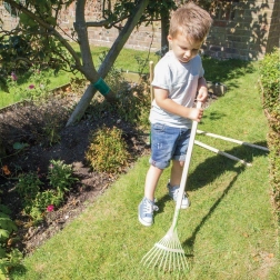 A Bigjigs Toys gyerek kerti gereblye ideális a kis kertészeknek, akik szeretnének segíteni a kertben. Masszív fém fejjel, fa nyéllel és gyerekekhez igazított mérettel készül. Támogatja a finommotorika fejlesztését és a pozitív kapcsolatot a természettel.