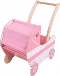 Ez a gyönyörű rózsaszín babakocsi szövet napernyővel és dekoratív, faragott részletekkel van ellátva, amelyek minden kisleány örömére szolgálnak. A játék segíti a kreativitás és a szociális készségek fejlesztését.