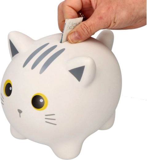 Aranyos és praktikus, nagy méretű persely fehér macska formában, tartós PVC anyagból. Ideális érmék és bankjegyek tárolására, remek ajándék gyerekeknek és felnőtteknek egyaránt. A 20 × 14,5 × 15 cm-es méreteknek köszönhetően bőséges helyet kínál, és egyben stílusos dekoráció a szobába. A termék megfelel a CE követelményeknek, és tartós PVC anyagával valamint kiemelkedő kapacitásával tűnik ki.