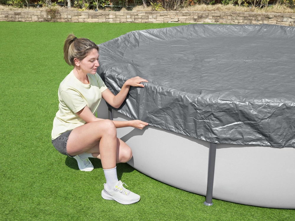 A BESTWAY márkájú, 3,05 m átmérőjű kerek medencéhez készült prémium takaró megbízhatóan védi a vizet a levelektől, fűtől és szennyeződésektől. Megerősített, UV-álló anyagból készül Polar‑Shield technológiával, amely −25 °C-ig is megőrzi a rugalmasságát fagyban. A praktikus vízelvezető nyílások megakadályozzák a víz felgyülemlését a felületen, a szélálló rögzítés pedig stabilan a helyén tartja a takarót.