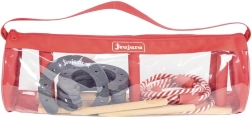 Élvezze a hagyományos családi szórakozást a patkó- és karikadobó játékkal a Jeujura márkától. A masszív fából készült stabil kereszt és bábuk, a praktikus utazócsomagolás és a vízbázisú, biztonságos festékek minőségi és biztonságos játékélményt garantálnak 3 éves kortól felnőtteknek is.
