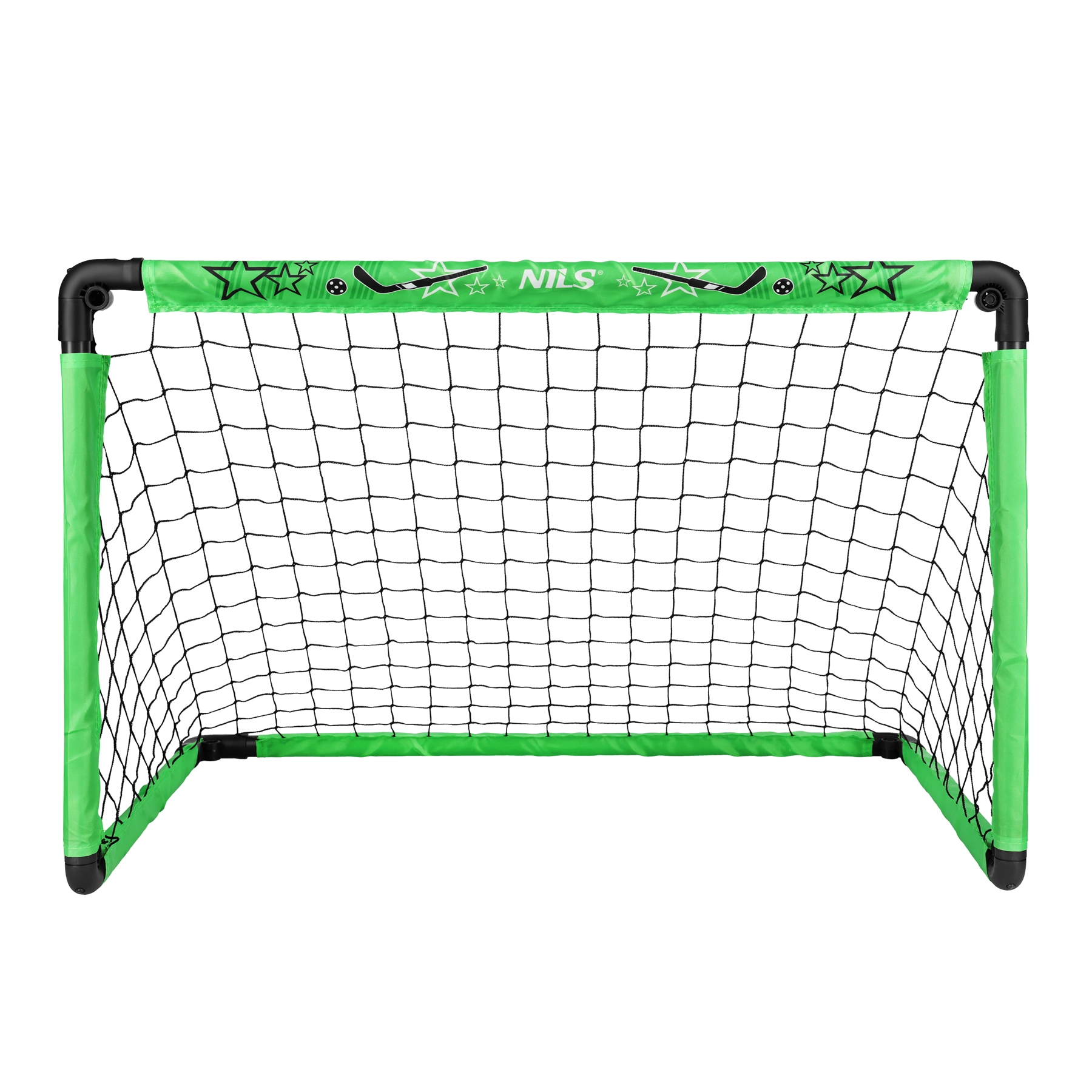 A NILS BRH2521 szett mindent biztosít az azonnali floorball meccsekhez. A praktikus, összecsukható kapu stabil szerkezetével tűnik ki, és összehajtva minimális helyet foglal, így könnyen szállítható és tárolható. A két, egyenes lapátú (90 cm) ütő megfelel jobb- és balkezeseknek is, a 6,35 cm átmérőjű labda pedig kibontás után azonnal játékra kész.