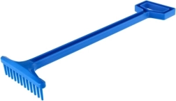 Hosszú nyél és formázott vég a stabil tartásért, homok vagy lomb gereblyézése közben is.