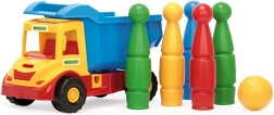 Billenős Multi Truck játékautó mozgatható rakodóttérrel szórakozást kínál a kicsiknek. A szetthez 5 színes gurigát és egy golyót tartalmaz.